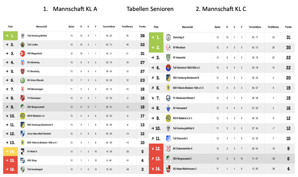 30.11.2025 Auswärtsspiele KL A u. KL C, letzte Spiel 2. Mannschaft vor der Winterpause