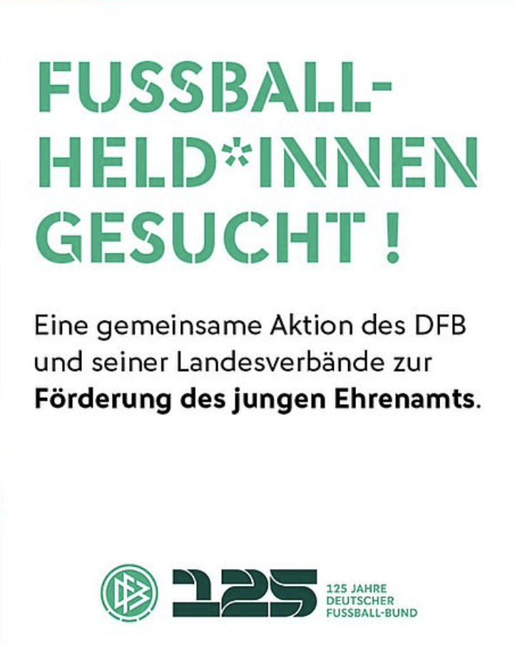Voraussetzung für die Auszeichnung ist eine herausragende ehrenamtliche Leistung in mindestens einem der letzten 3 Jahre von 2024 bis 2026. Die Ausschreibung richtet sich an Kinder- und Jugendtrainer*innen sowie Jugendleiter*innen und Schiedsrichter*innen unter 30 Jahren (Geburtsdatum 01.01.1996 bis 30.09.2009). Die detaillierten Richtlinien, weitere hilfreiche Informationen sowie das Online Bewerbungsformular findest Du unter www.dfb.de/ehrenamt oder www.fussball.de/fussballhelden.