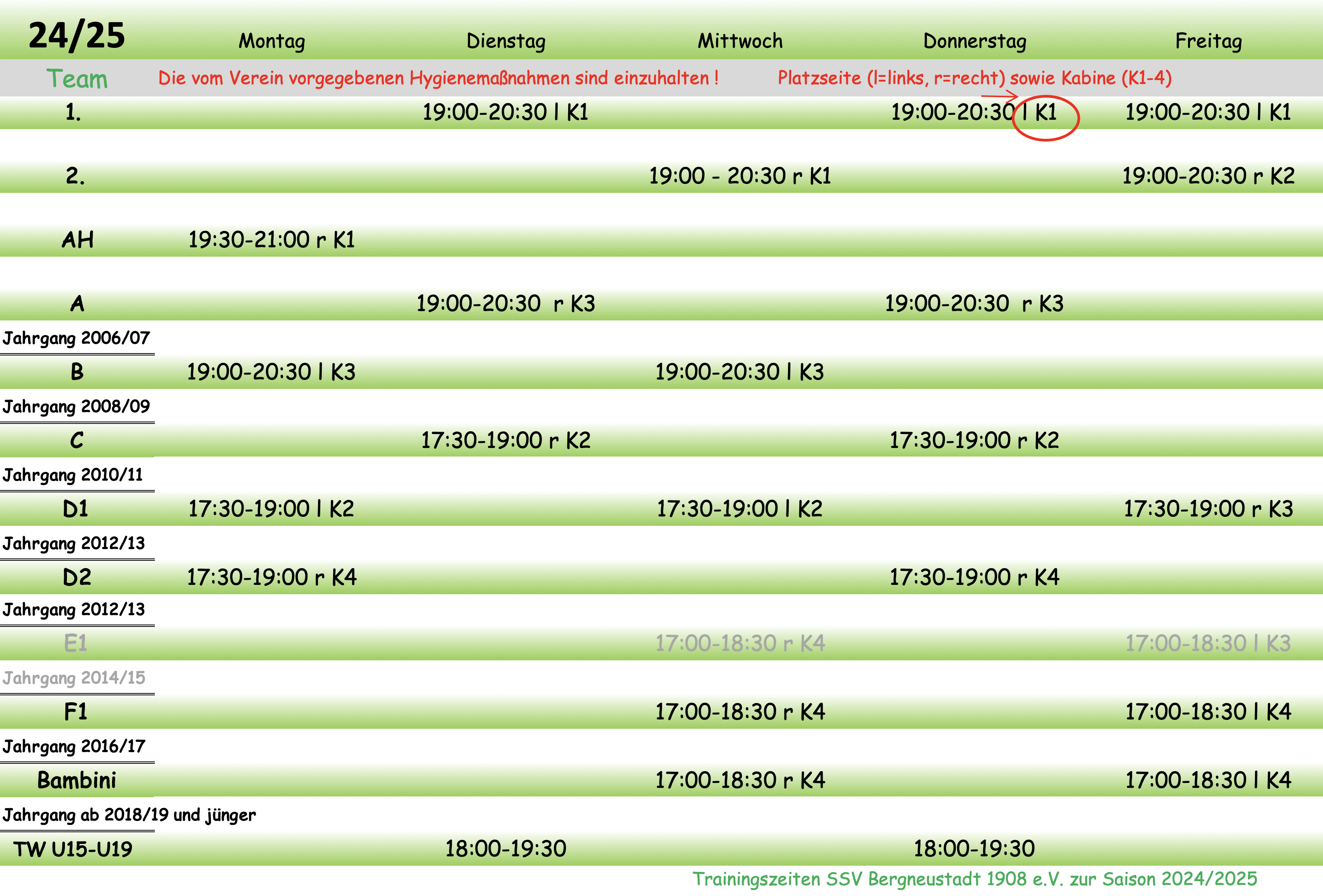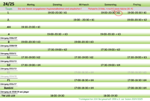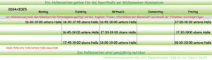 Hallentrainingszeiten